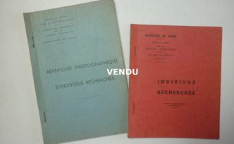 Lot de deux répertoires photographiques édités en 1962 par le ministère de l’ intérieur pour les agents de Police. Il s’agit des …