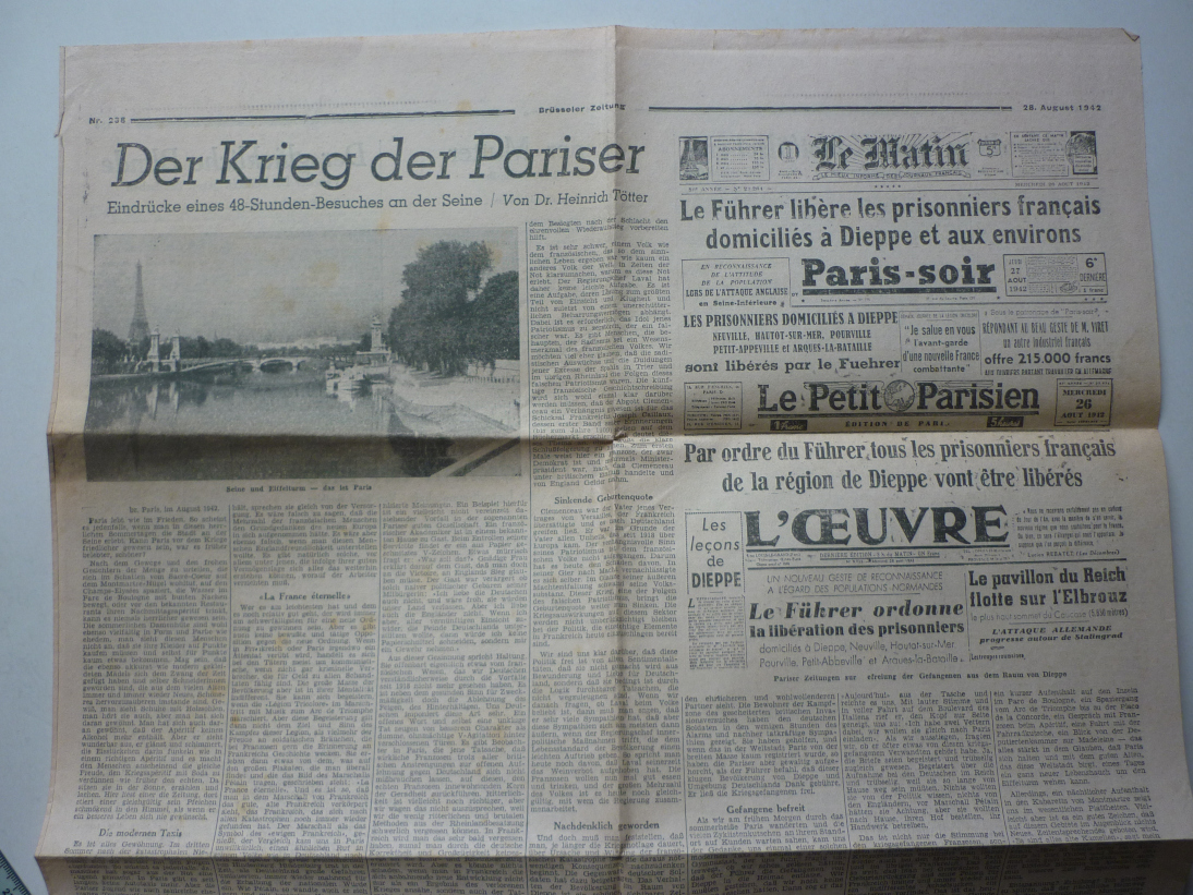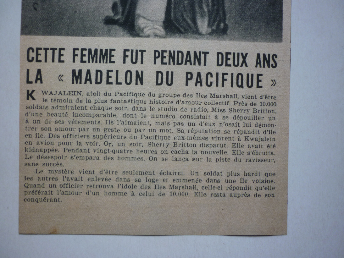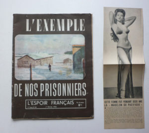 Vendu avec deux coupures de presse qui se trouvaient à l’intérieur : un article sur une pin-up « La madelon du pacifique », et une page de journal allemand « Brüsseler Zeitung » du 28 aout 1942.