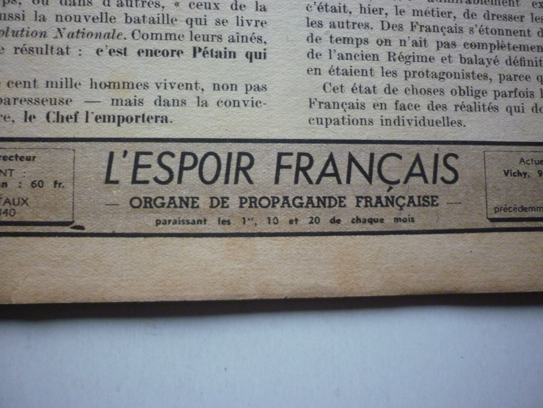 Edité par l’ Espoir français, organe de propagande à Vichy.