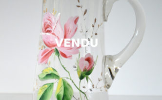 Pichet en verre soufflé émaillé fleuri 1900