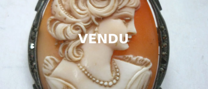 Joli camée de grande taille représentantun profil de femme Hauteur : 4,5 cm Monture en argent avec marcassites. prix : Vendu ref. 699/20