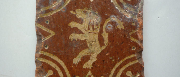 Carreau flamand en terre cuite vernissée du XVIIe – XVIIIe siècle Lion de la province de Flandre ( St-Omer, Aire-sur-la-Lys, Hazebrouck, Bailleul, Ypres, Lille) Côté : environ 14,4 cm prix : 29 euros ref. 703/42