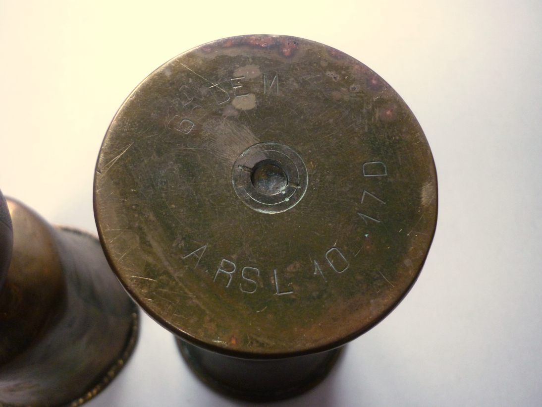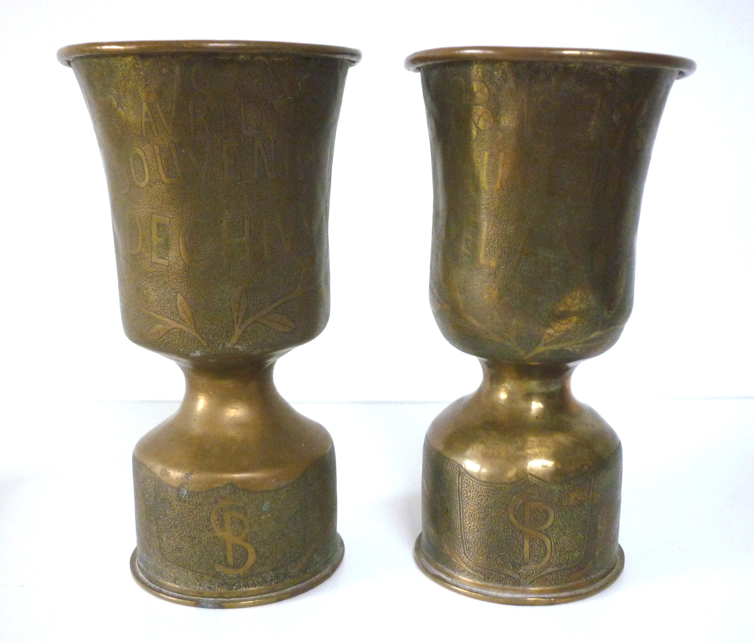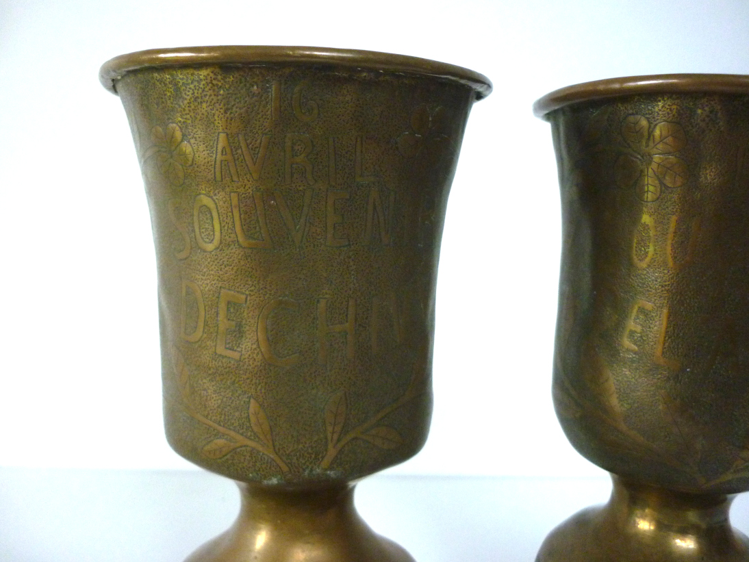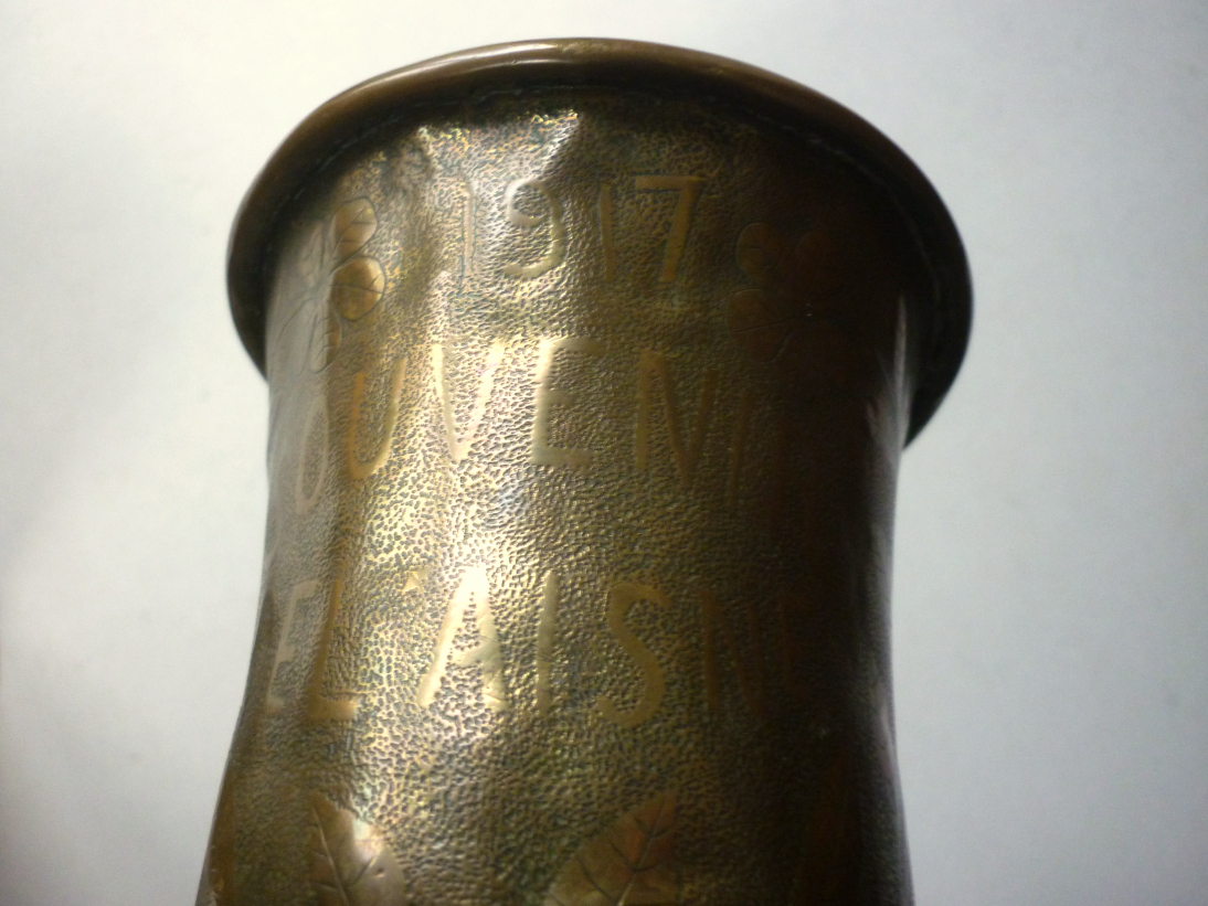 Art de tranchée : vases en douilles gravées Chemin des Dames Chivy 1917