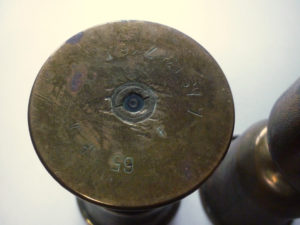 Jolies paire de douilles de 65mm de montagne gravées par un poilu en souvenir de l’offensive du Chemin des Dames.