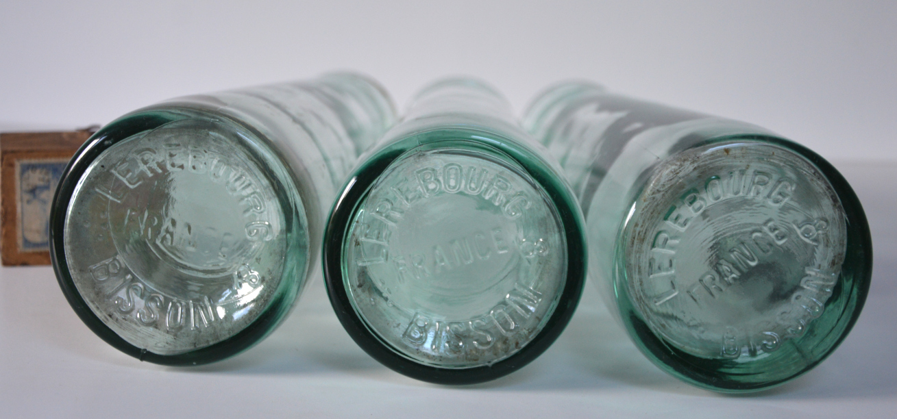 Bocaux d’ épicerie Lerebourg Bisson Lot de 3 anciens bocaux en verre Lerebourg Bisson Utilisés dans les épiceries. Un possède encore un reste d’étiquette en papier (qui s’enlève à l’eau selon les goûts) Hauteur : environ 30 cm Bon état prix : 35 euros le lot ref. 696/6