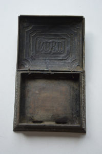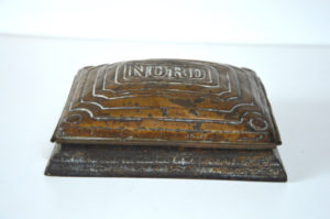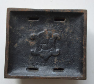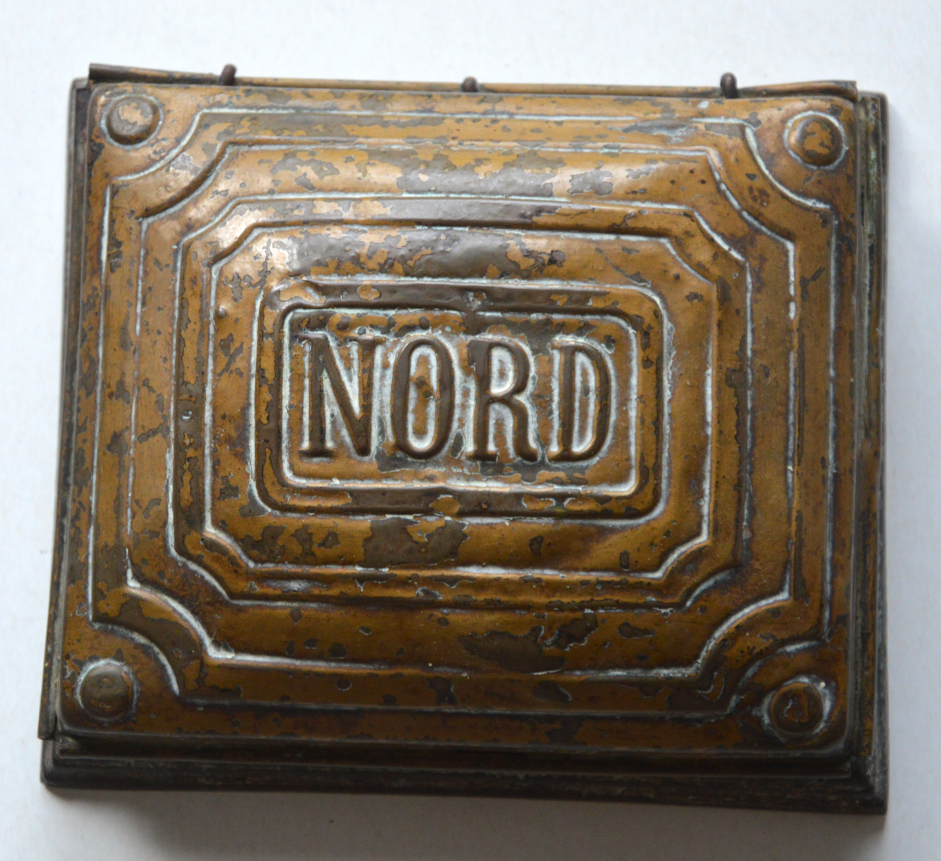Boîte porte-tampon des chemins de fer du Nord Boîte en fonte et couvercle en laiton qui servait à l’origine de porte tampon pour les chemins de fer du Nord. Longueur : 15 cm prix : 60 euros ref. 700/1
