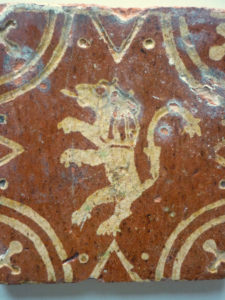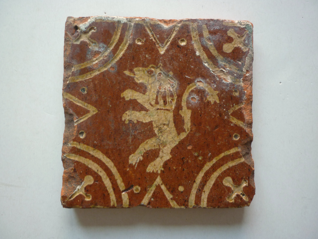 Carreau ancien au Lion des Flandres XVIIe XVIIIe siècle Carreau flamand en terre cuite vernissée du XVIIe – XVIIIe siècle Lion de la province de Flandre ( St-Omer, Aire-sur-la-Lys, Hazebrouck, Bailleul, Ypres, Lille) Côté : environ 14,4 cm prix : 29 euros ref. 703/42