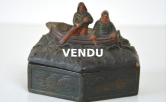Petite boite souvenir de bord de mer de Dieppe Couple de pêcheurs sur une barque. En terre cuite de l’ Isle Adam. …