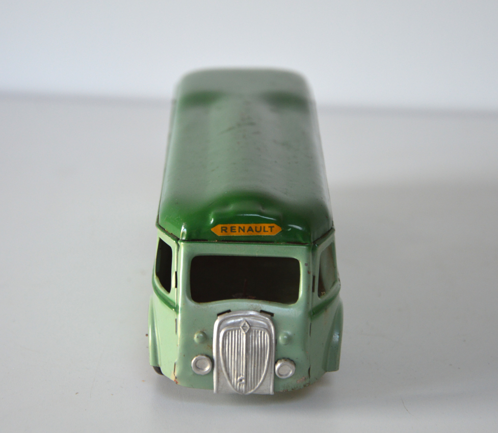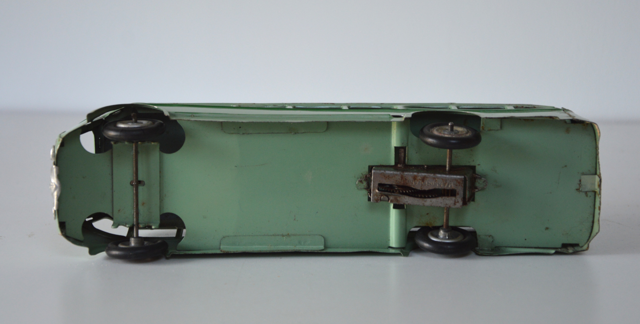 Jouet en tôle 1950’s : autocar Gio CIJ 55 Jouet mécanique des années 1950 dela marque CIJ Mécanisme fonctionnel, belle peinture d’ origine Longueur : 23 cm prix : Vendu ref. 702/8