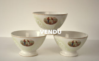 Lot de 3 anciens bols en faience de KG Lunéville décorés du couple de paysans de l’ Angelus de Millet. Bon état …