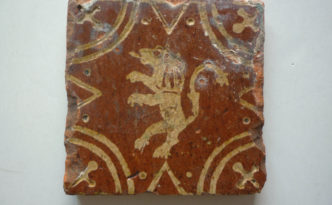 Carreau flamand en terre cuite vernissée du XVIIe – XVIIIe siècle Lion de la province de Flandre ( St-Omer, Aire-sur-la-Lys, Hazebrouck, Bailleul, …