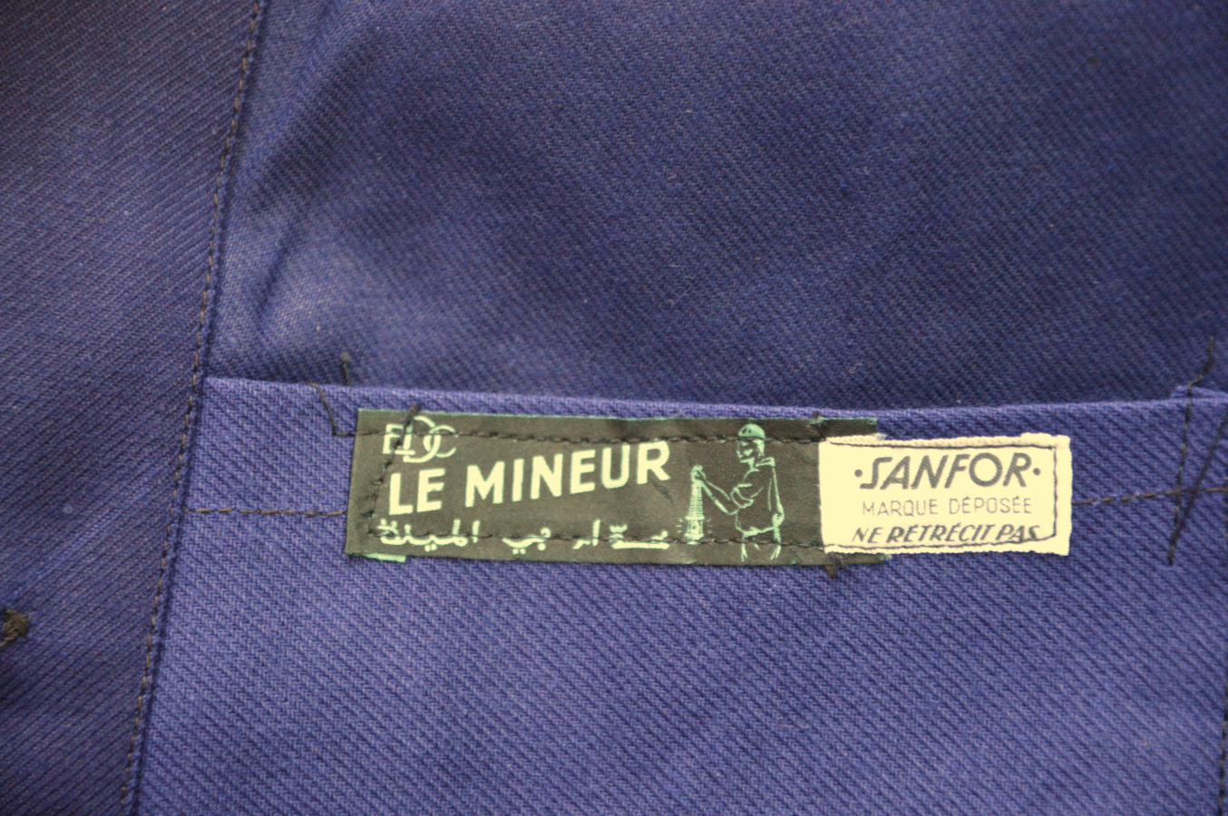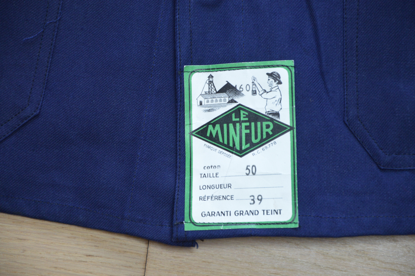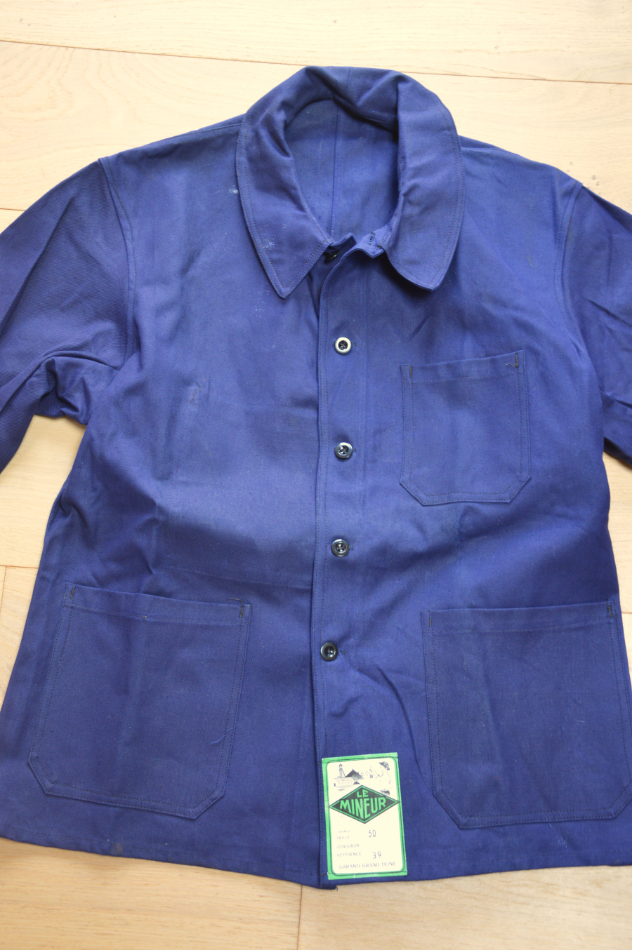 Veste bleu de travail Le mineur 1950-60’s Ancienne veste bleu de travail. Marque Le Mineur Années 1950/60. Excellent état, deadstock avec ses étiquettes d’origine. Taille 50 prix : 45 euros ref. 703/44